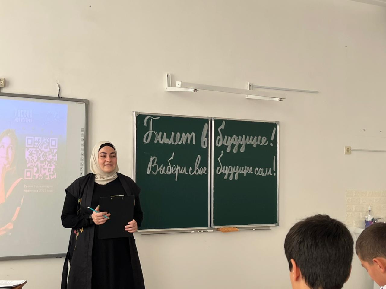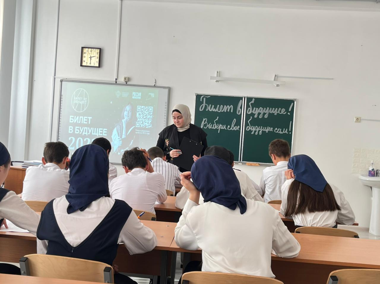 МБОУ«СОШ № 4 г. Шали», участвуя в проекте «Билет в будущее», посетили профпробы с обучающимися 7-9 классов, на которых обсудили разные возможности при выборе профессии.