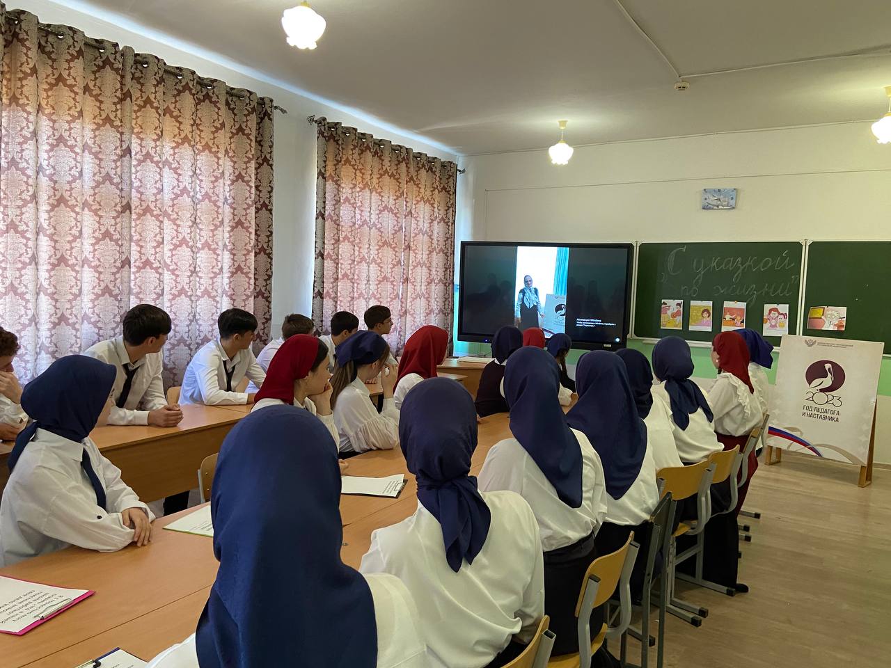 19.09.2023#ГодПедагогаНаставника, #ГПН_2023, #ГПН66 Указом Президента России Владимира Путина объявлен Годом педагога и наставника. Миссия Года – признание особого статуса педагогических работников. В РАМКАХ ГОДА ПЕДАГОГА И НАСТАВНИКА МБОУ «СОШ № 4 г.Шали» зам. директора по ИКТ Гудаева Луиза Хаважиевна провела мероприятие в 10-11 классах на тему Час профессии «С указкой по жизни». Приятно было слышать много добрых слов о своей учительнице от ребят. Мероприятие было проведено при помощи презентации и видеороликов, показали детям, что благодаря педагогам живет в России любовь к книге, искусству, истории, науке, Родине.#ГодПедагогаНаставника, #ГПН_2023, #ГПН66